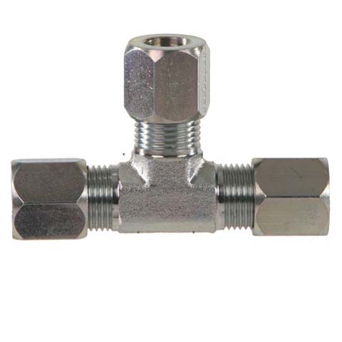 Twin ferrule design for maximum performance. CMP-4300 is a 3 way tee for 1/4 inch tube compression. Plated steel. For a stainless steel version of this see CMS-4300.